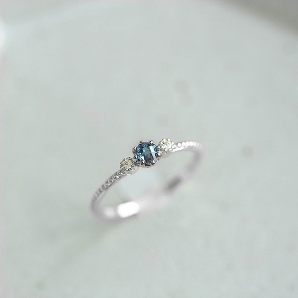Anillo de Compromiso de Oro 18k y Plata 925 en Azul Marino